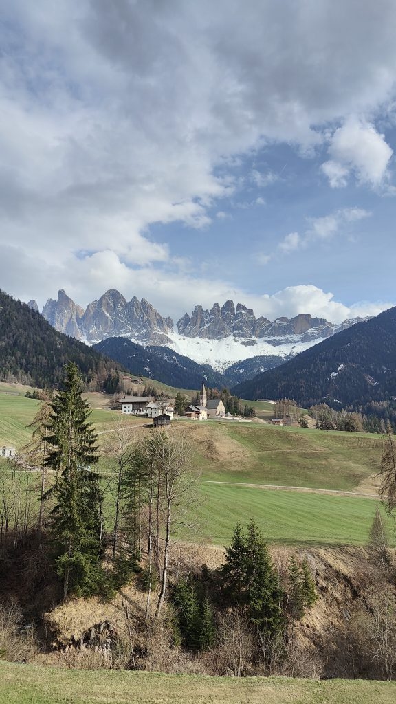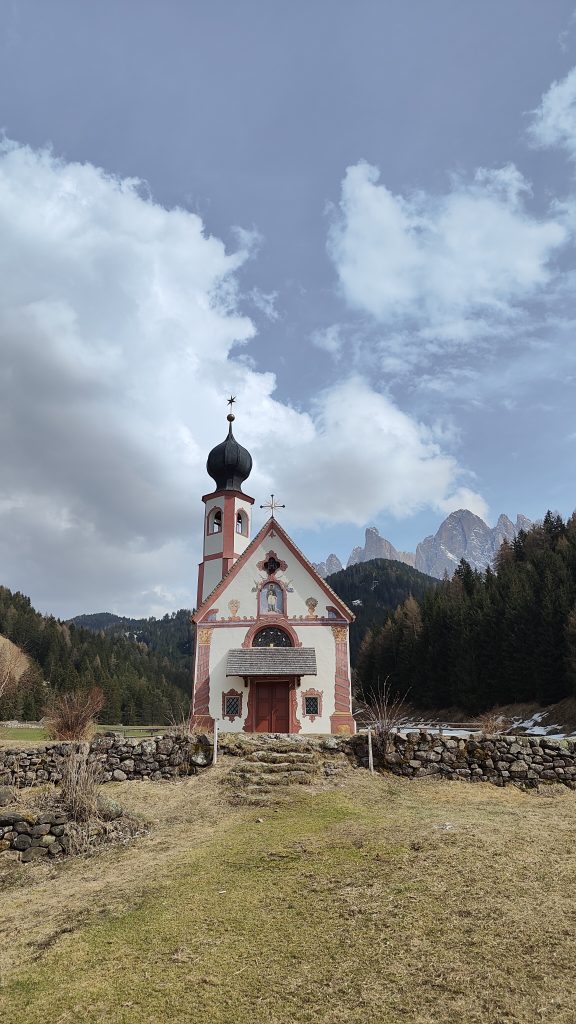 En el Val di Funes te sentirás como en un cuento. En el se encuentra la famosa Capilla de San Giovanni in Ranui. Para acceder a la pradera de la iglesia, hay que pagar para pasar por el torno, 4€ por persona.