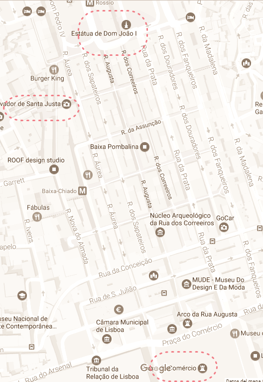 Otros lugares de la Baixa son Avenida de Liberdade, la Plaza de los Restauradores y la Plaza del Rossio.