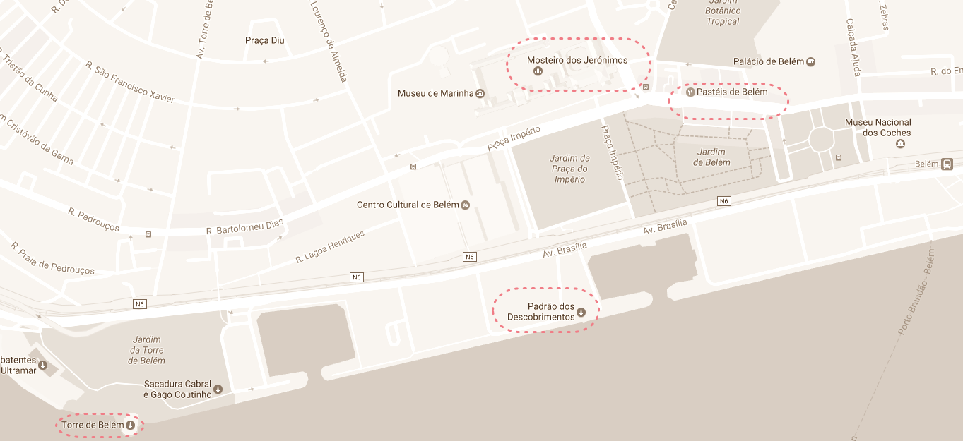 Se llega a Belem fácilmente en el tranvía 15 o en el autobús 728 . En este barrio se encuentra la Torre de Belem, el Monasterio de los Jerónimos y el Monumentos a los Descubrimientos. Además allí podrás disfrutar de unos pasteles de nata con el Puente 25 de Abril a tus espaldas.