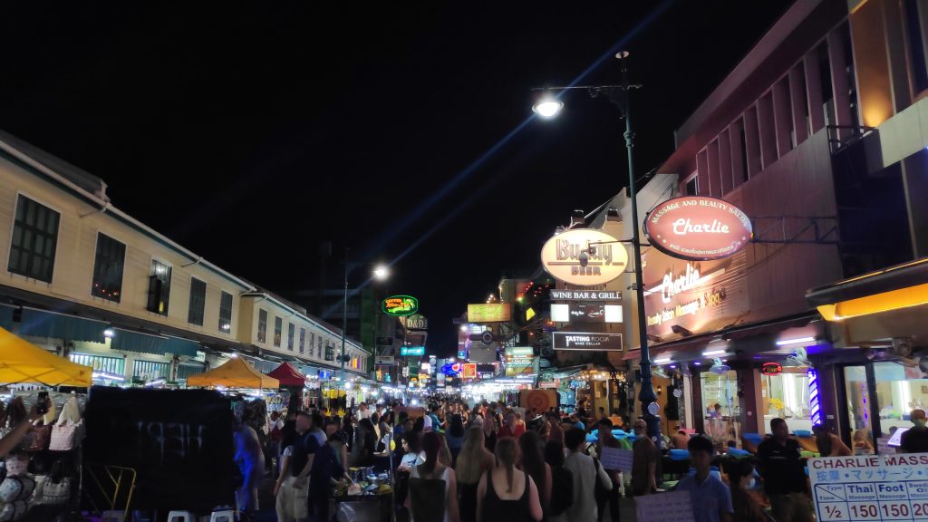 La calle de los mochileros por excelencia. Desde la tarde hasta bien entrada la noche podrás desde hacerte un tatuaje, comerte un escorpión, tomarte una copa o comprar un souvenir, todo en la misma calle.