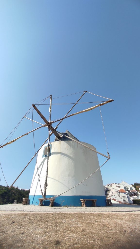 Si tienes tiempo, puedes visitar esta localidad de la costa oeste de Portugal. Sus calles con casas blancas y su molino hacen que sea un punto atractivo y lugar que comunica con una playa perfecta para los amantes del surf.
