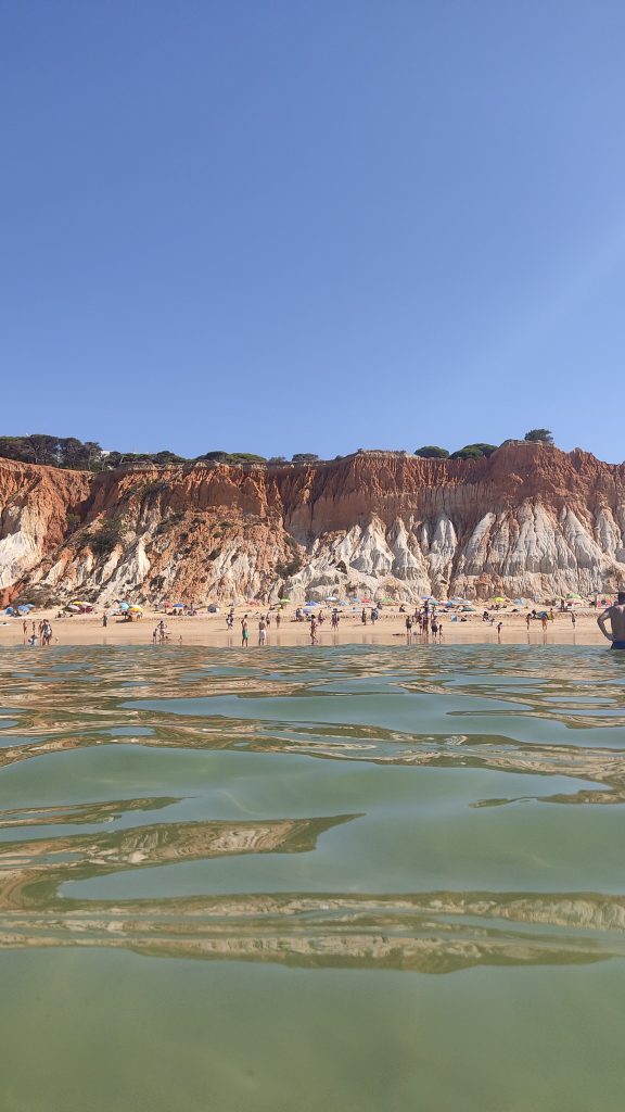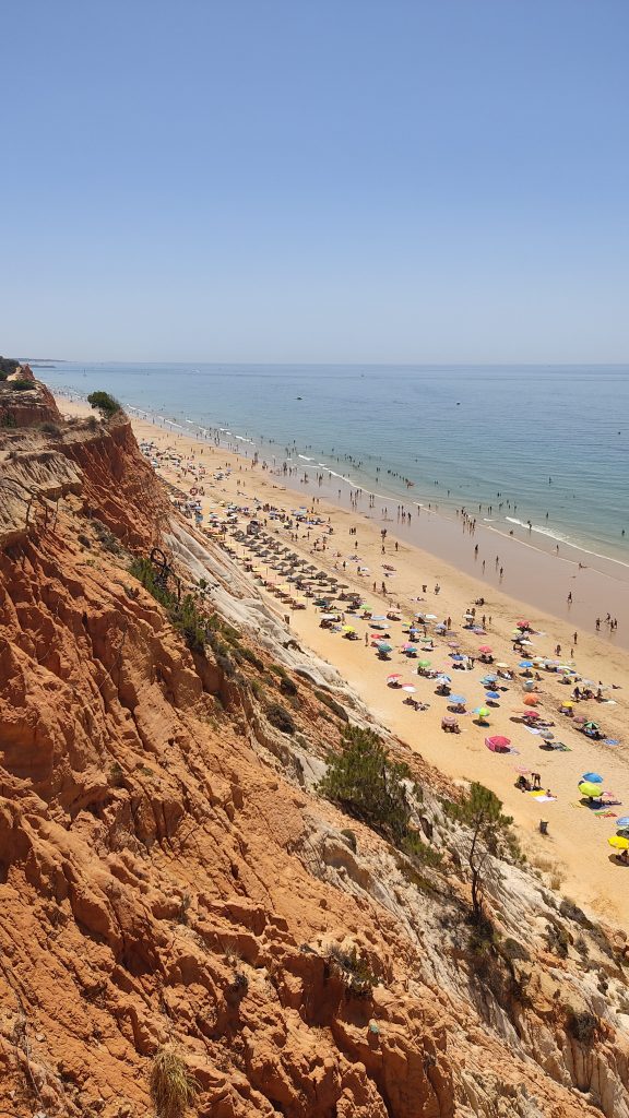 Muy cerca de Albufeira se encuentra esta playa en la que sus acantilados cambian a un tono marrón. Es una playa muy larga, con varias zonas con hamacas y sombrillas para alquilar. Nuevamente se accede a ella a través de escaleras desde el parking que hay en la parte alta.